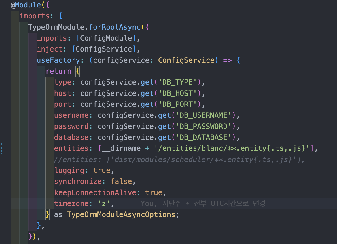 타임존 'z'만 추가해주면 이제 TypeOrm은 UCT시간을 사용하게 된다.