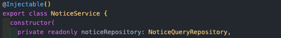 private를 사용하면 동일한 위치에서 즉시 NoticeRepository 멤버를 선언하고 초기화 할 수 있다.
