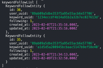 하지만 나는 이 결과값에서 keyword_uuid만 뽑아서 사용을 해야되는 상황이 생겼다.