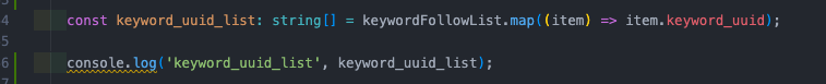 앞서 변수로 선언한 keywordFollowList에 .map() 함수를 사용해서 원하는 값을 추출해서 새로운 배열로 만들 수 있다.