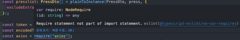 일단은 Eslint에서 해당 require를 비활성화 시키는법에 대해 포스팅 해보려고 한다.