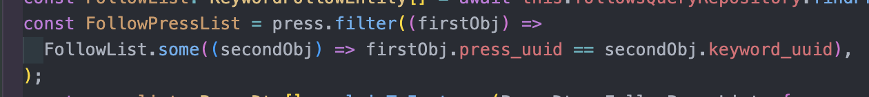 press_uuid 값을 가지는 객체들만 추출하여 FollowPressList배열에 저장하는 코드이다.