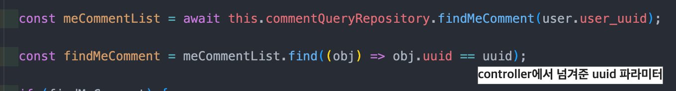 "meCommentList"라는 배열의 객체의 uuid의 value과 controller에서