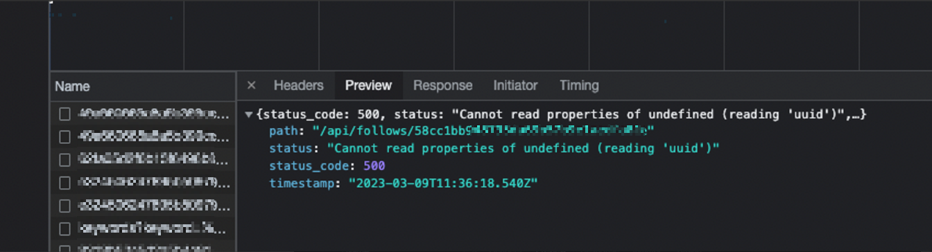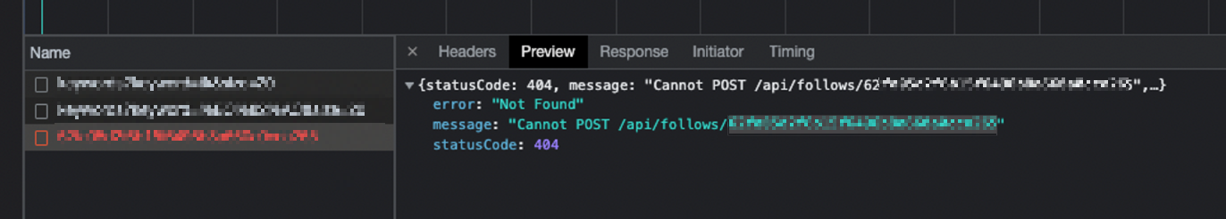 이 같은 증상을 보고 URL에는 /api/follows/{uuid} 인 반면