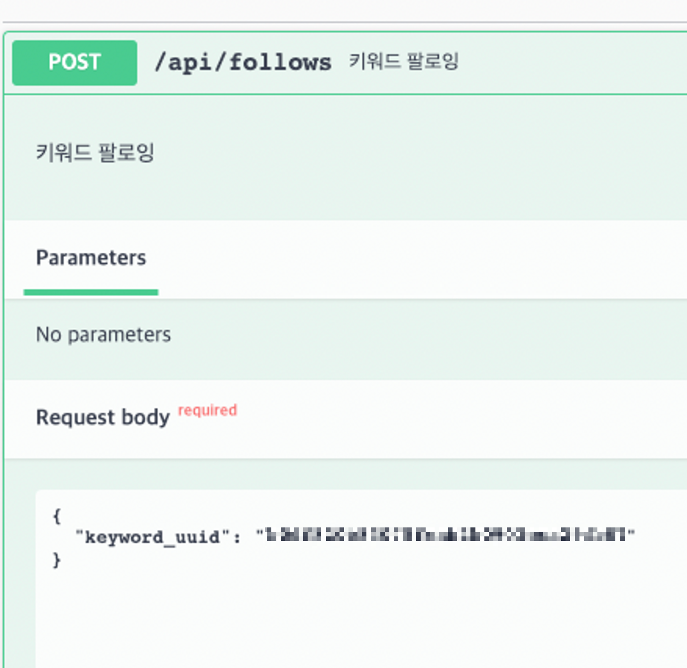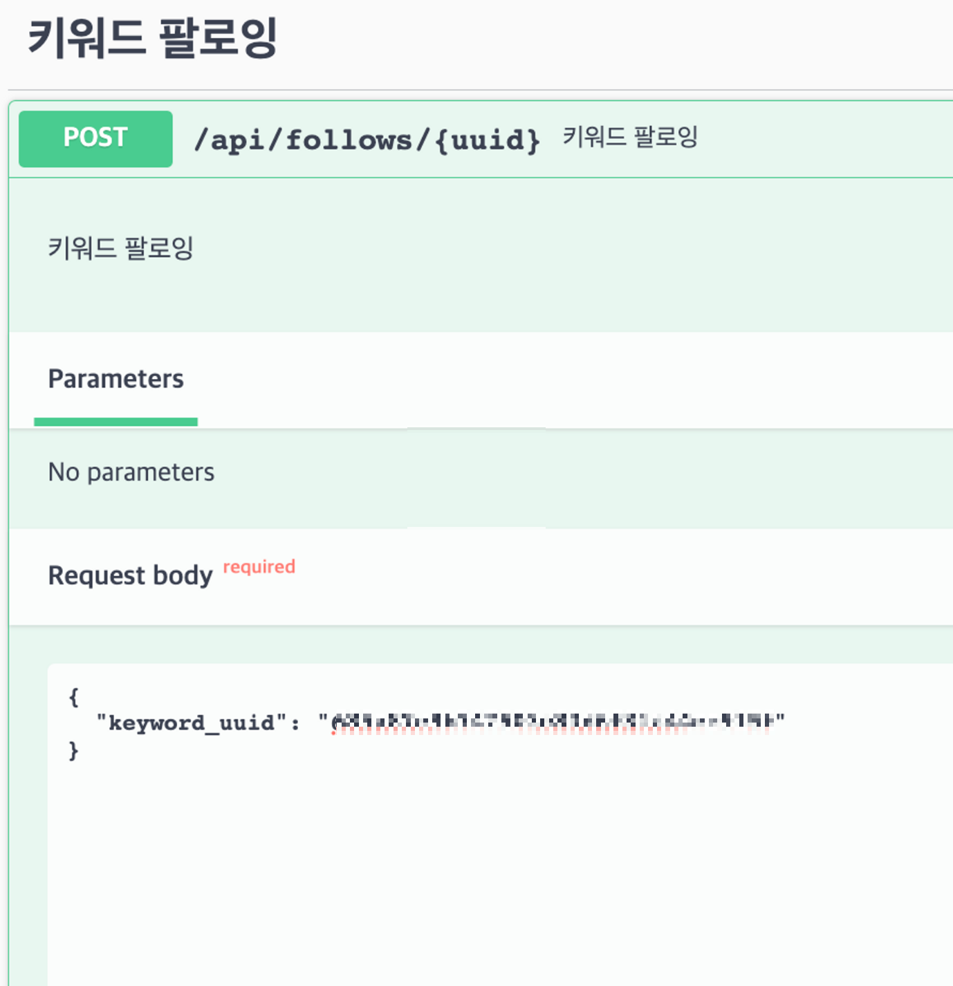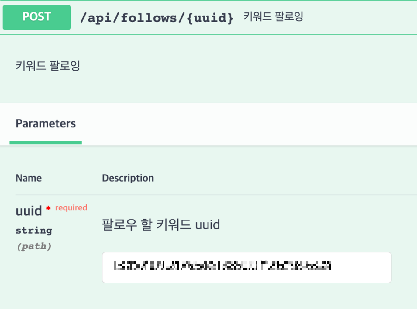 path는 명세서대로 해서 /api/follows/{uuid} 지만 파라미터는 body만 넣어서 RESTful하지 못했다.