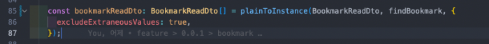나는 Response값으로 BookmarkReadDto 형태가 필요하므로 plainToInstance로 매핑을 해줘야 한다.