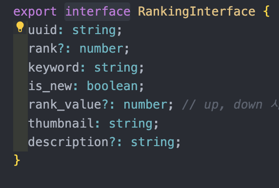 랭킹서비스부로 넘어가게 되는데 이때 RankingInterface로 어떠한 데이터를 넘길지 약속을 해주는 의미로
