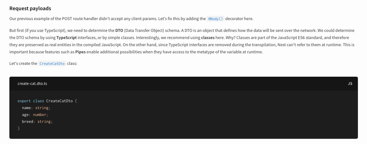 좀 더 자세히 알아보기 위해서 NestJS공식문서를 흝어보았는데,