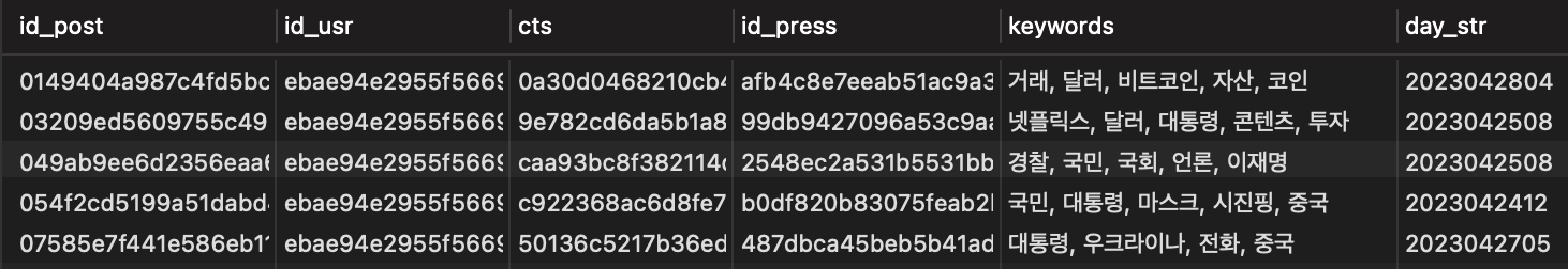 이제 쿼리를 돌린 데이터를 확인해보자.