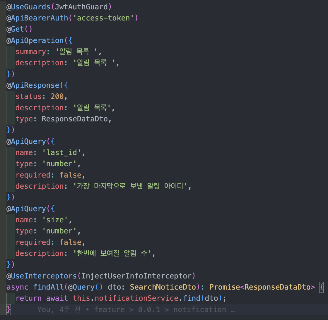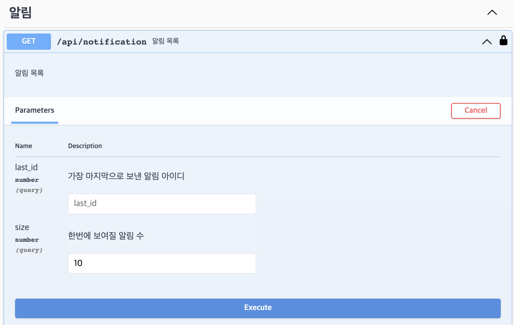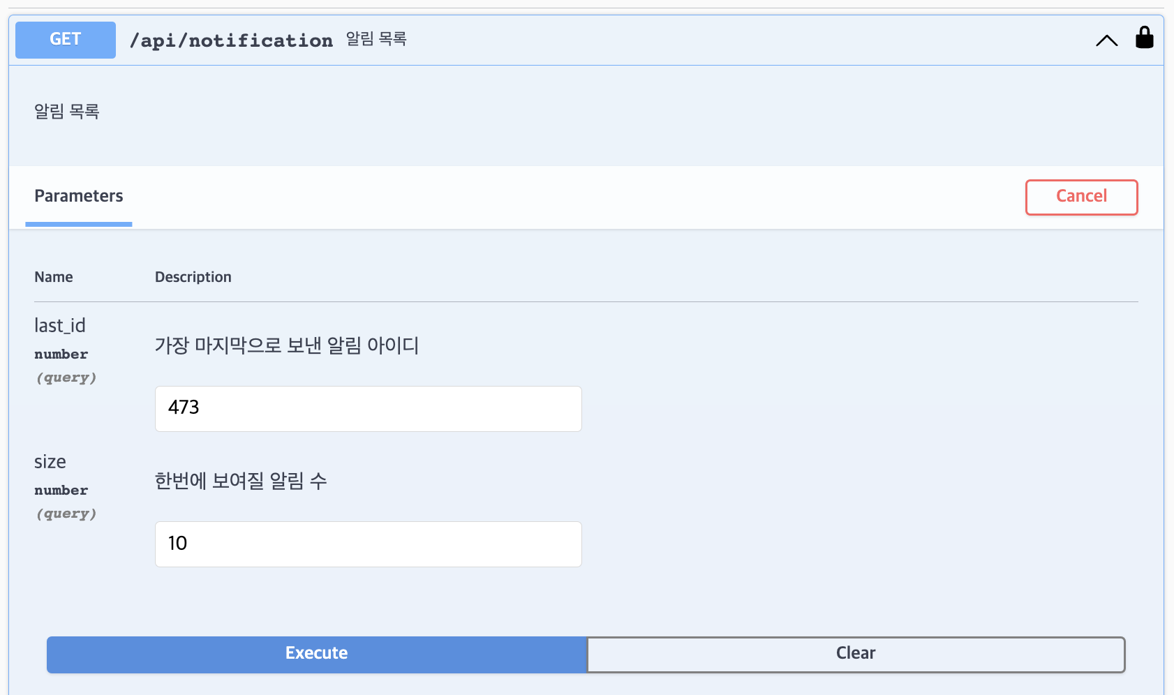 해당 controller부에서 @Query dto에 "last_id"와, "size"를 넣어준다.