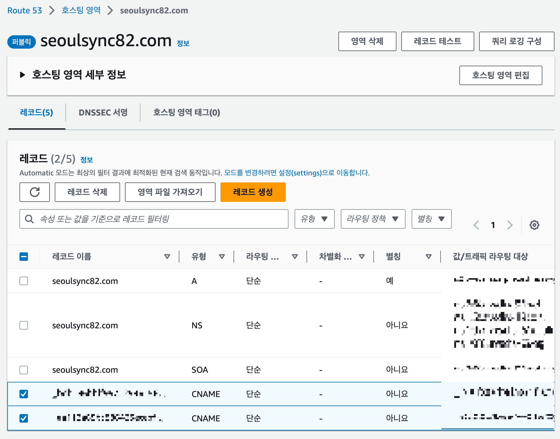 Route53 -> 호스팅영역 -> 해당 호스팅 선택