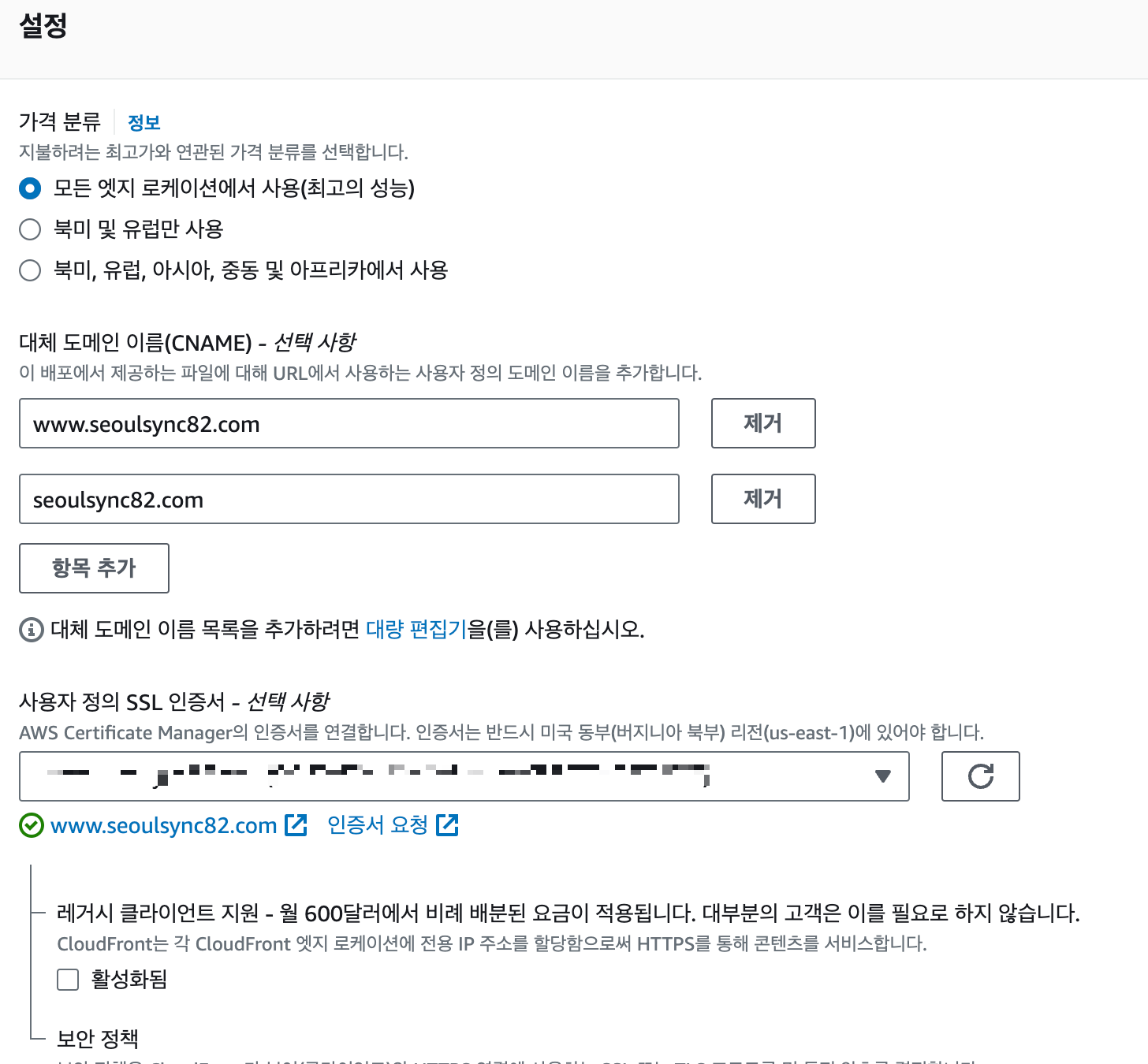 모든 엣지 로케이션 사용을 선택하고,