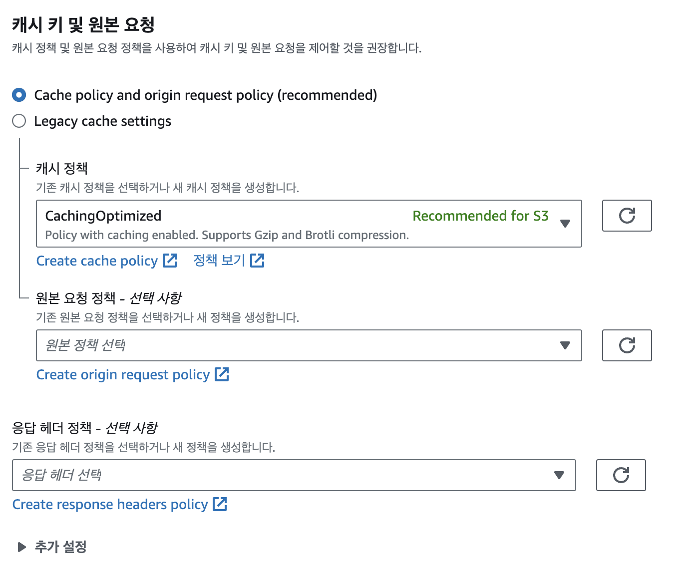캐시 정책은 CahingOptimized 를 선택해주자.