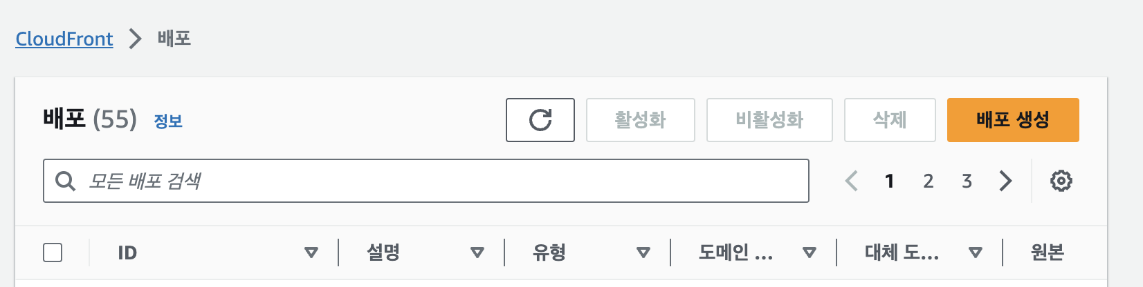 CloudFront 서비스로 들어가서 배포 생성을 눌러주자.