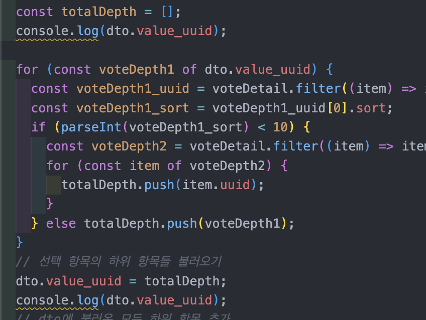 아무튼 하위항목들을 찾아서 기존dto에 push하다가 console.log 창을보니 중복된 값도 같이 쌓이고 있었다.