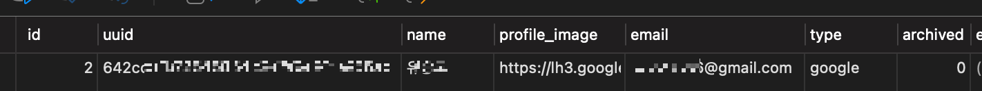 나는 uuid 베이스로 DB를 설계해놔서 uuid도 추가해 주었다.
