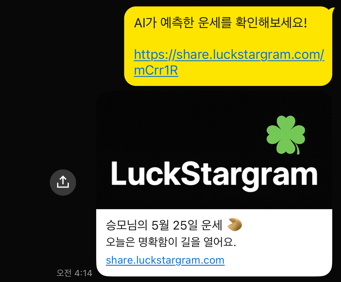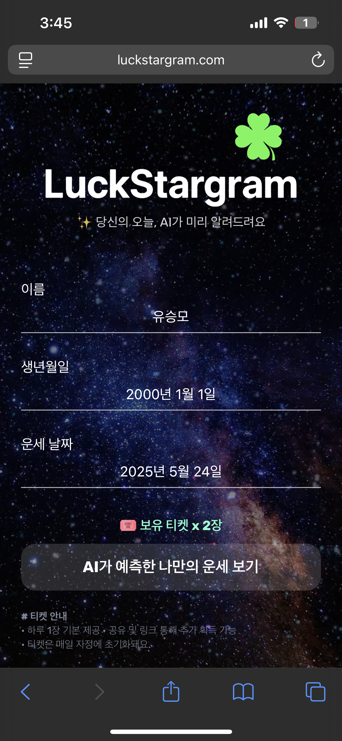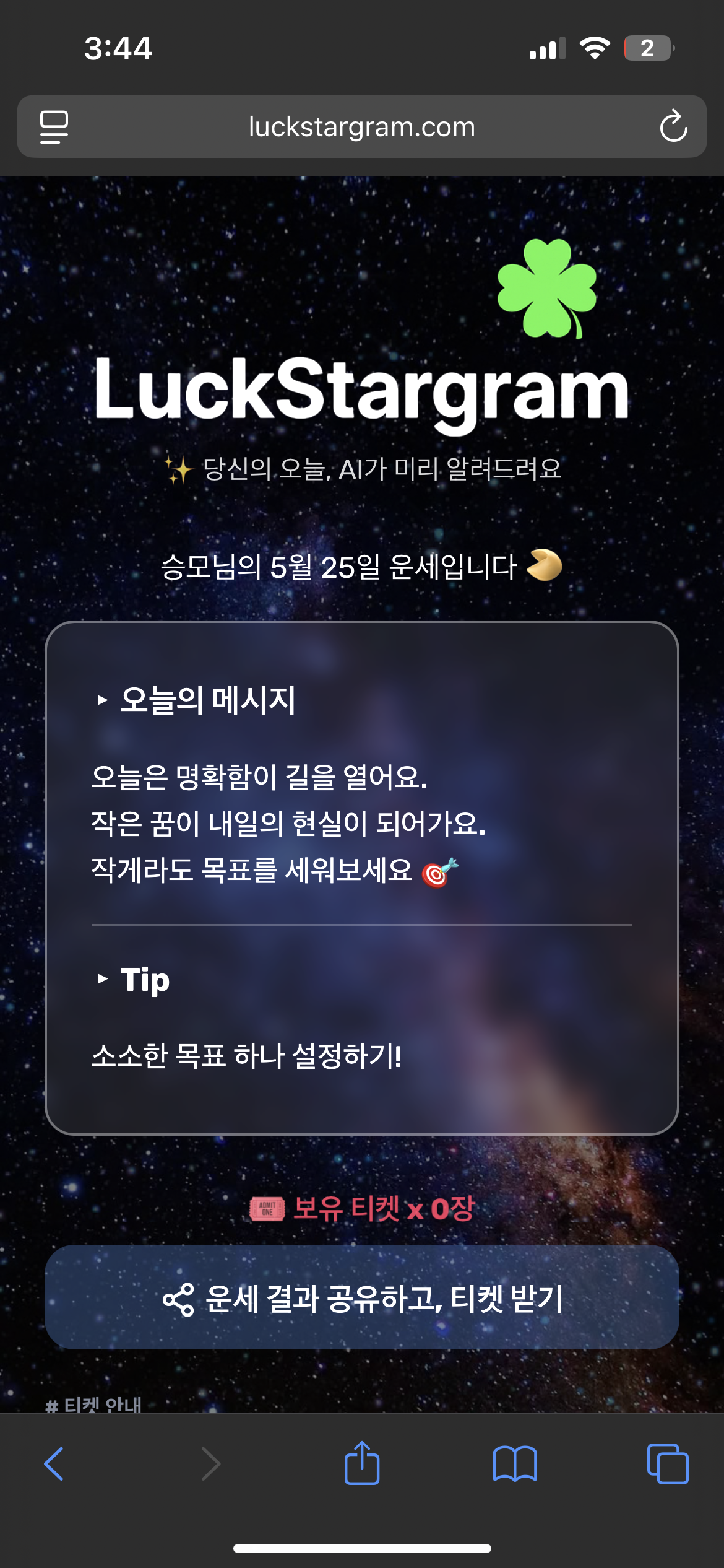 - 운세 결과를 공유하면 티켓 1장 추가 획득