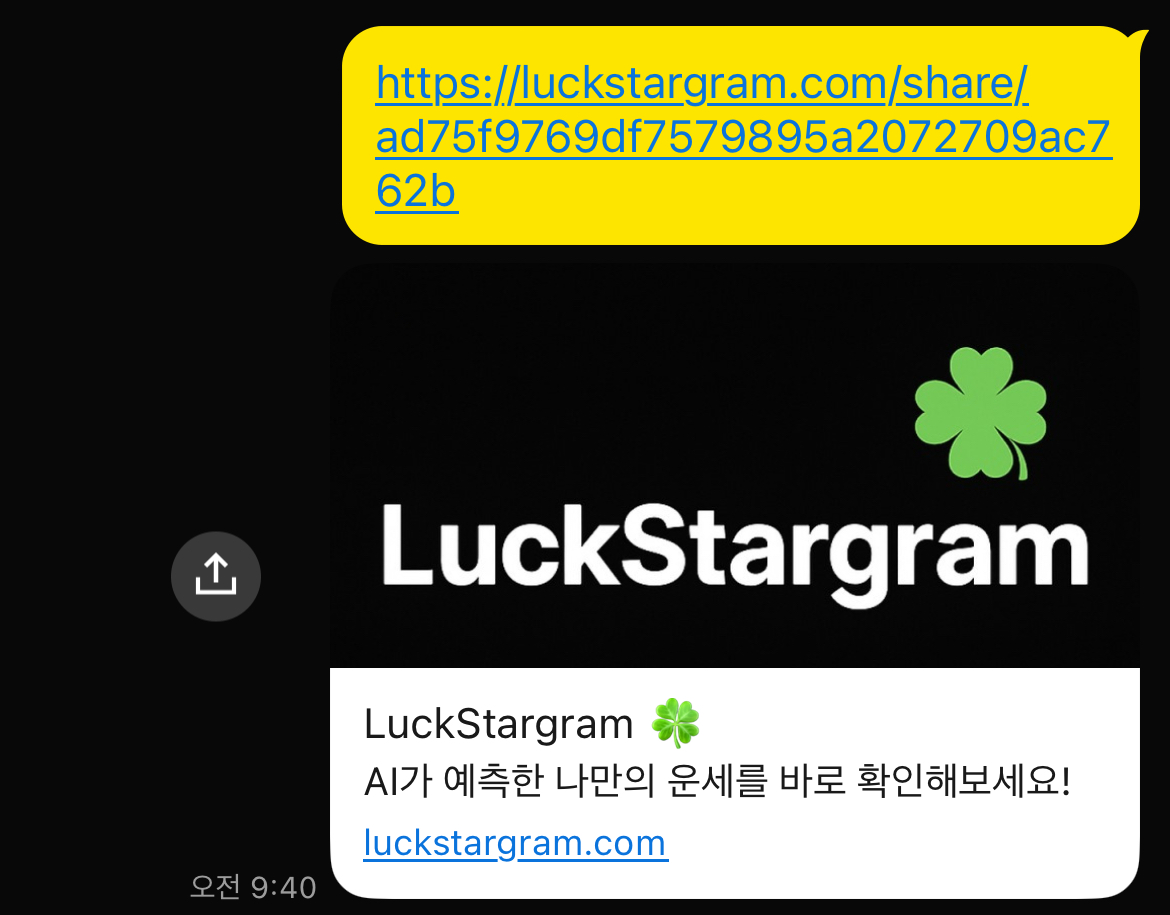 카카오톡에 공유해보면 이 글에서 설명한 동적 OG 메타태그가 어떻게 작동하는지 직접 확인할 수 있을 것이다!