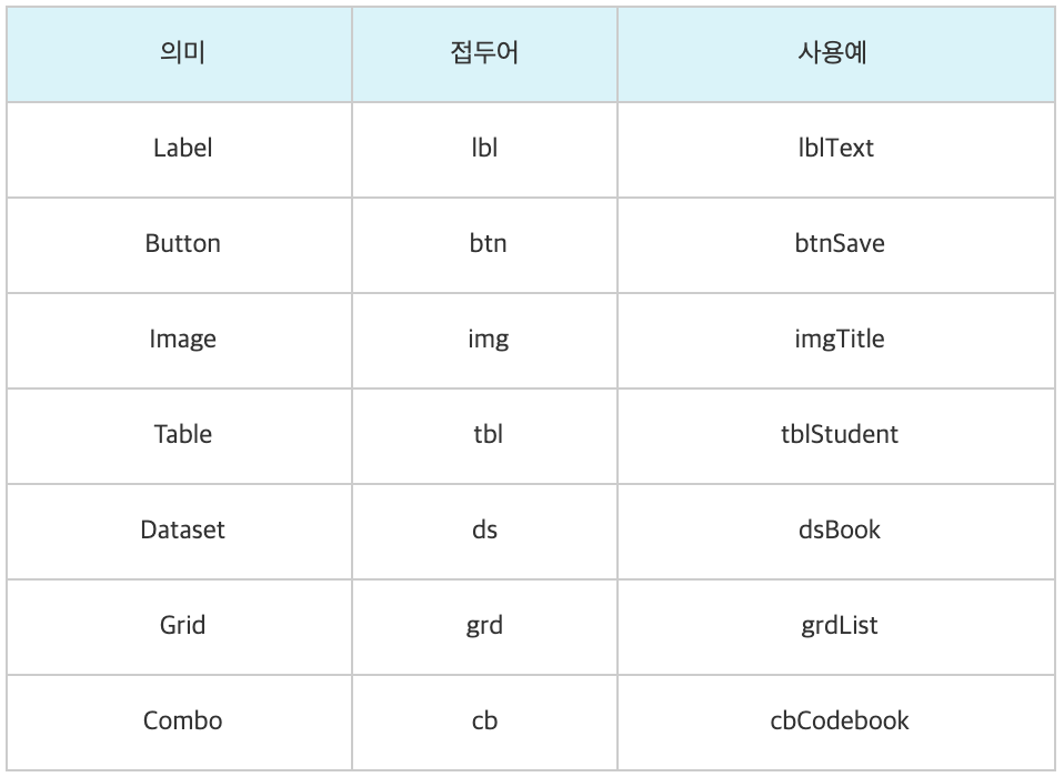 접두사를 사용하여 변수명을 지을때 접두사는 축약어를 사용하는 편이 좋다.